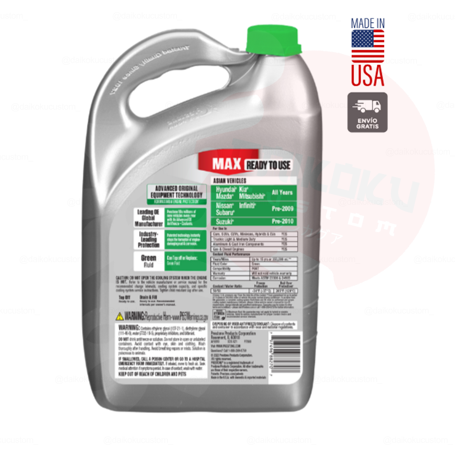 Agua Coolant Prestone Asian Verde 3.7lts