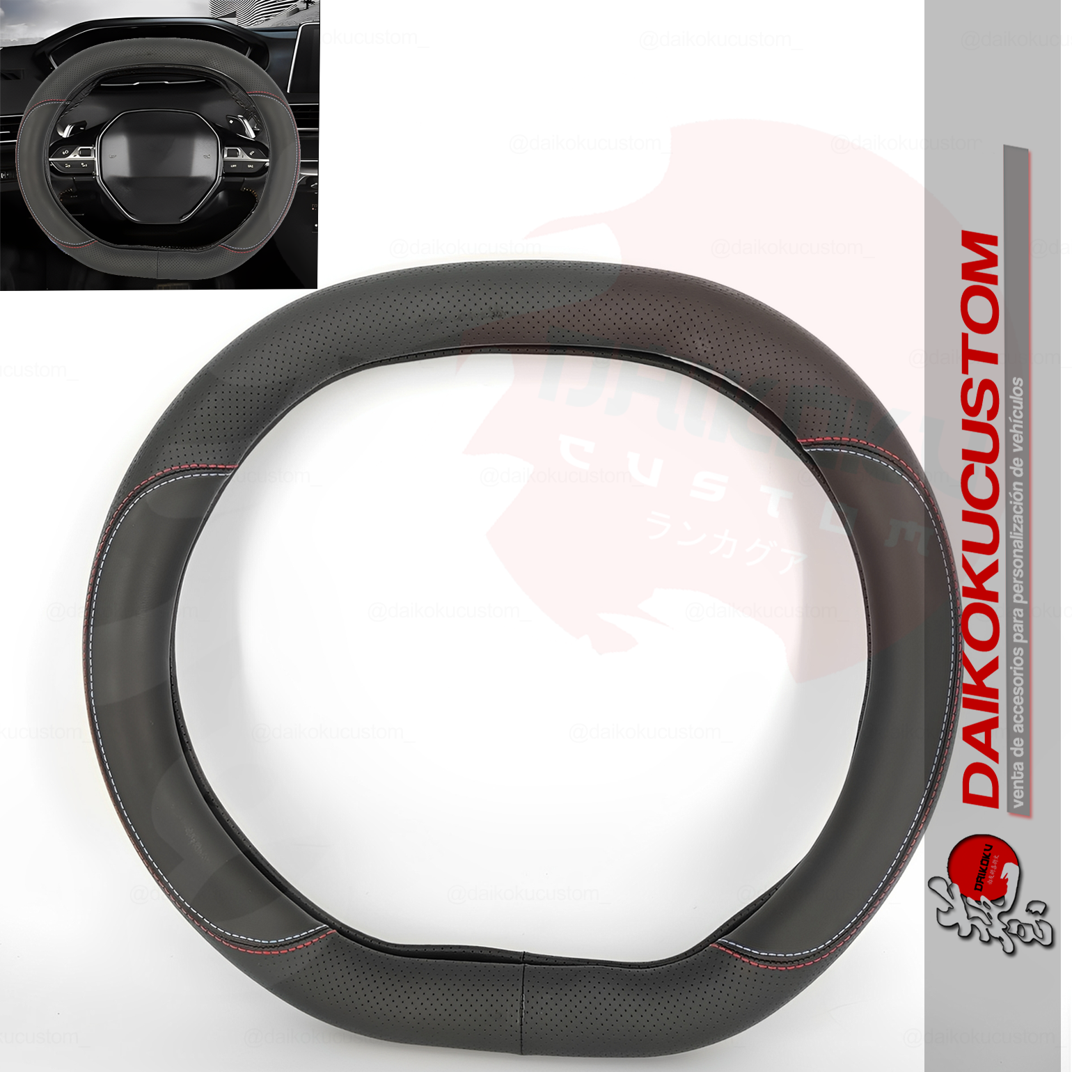 Cubre Volante Eco Cuero Peugeot Universal (Modernos) Hilo Rojo Azul