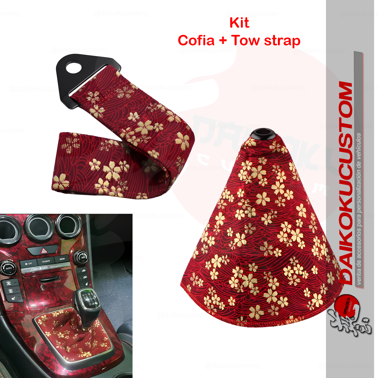 Kit Cofia + Cinta Tow Strap Japo Flores Doradas