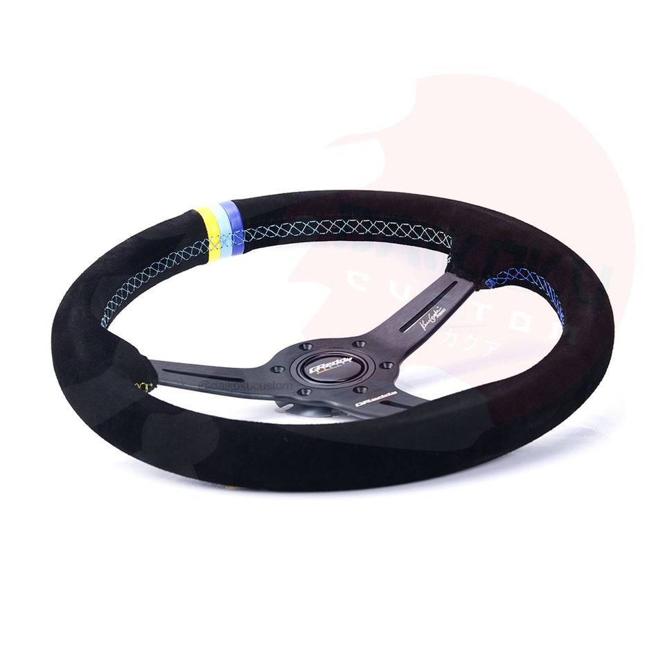 Volante Deportivo Gamuza Greddy Hilo Celeste/Amarillo Lineas